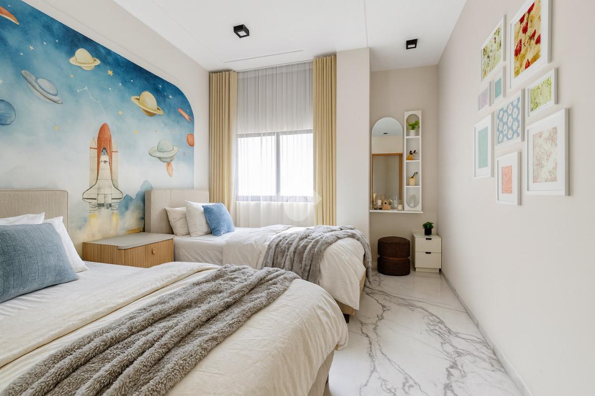 L’espace jour se compose d’un salon lumineux et d’une cuisine indépendante. L’espace nuit comprend deux chambres à coucher ainsi qu’une suite parentale dotée de sa salle d’eau privative. Une salle d’eau pour les invités est également disponible.