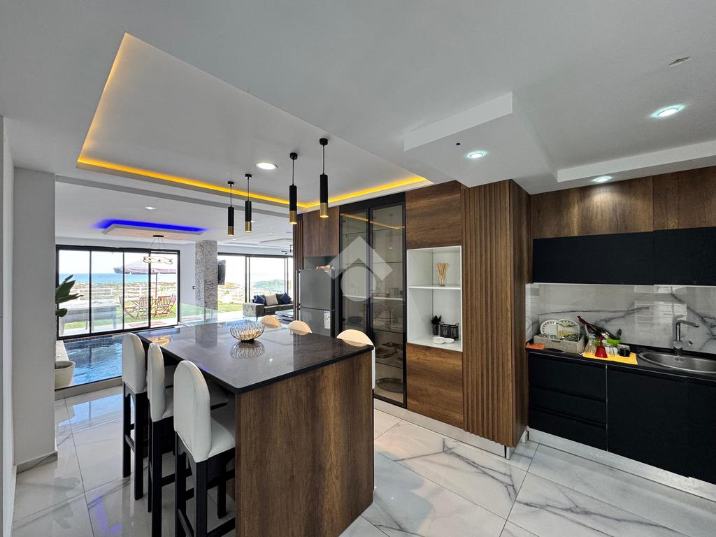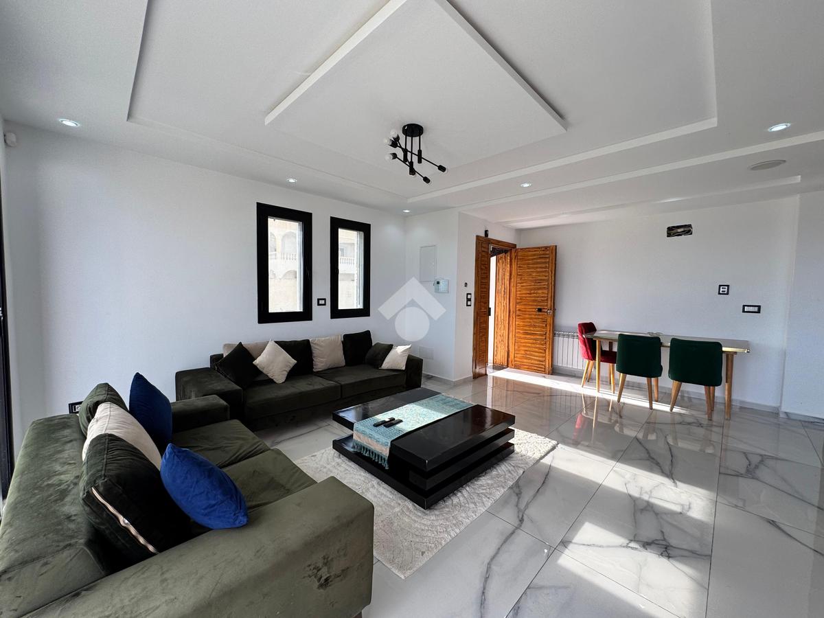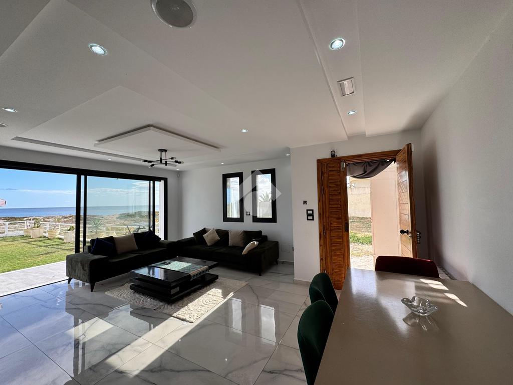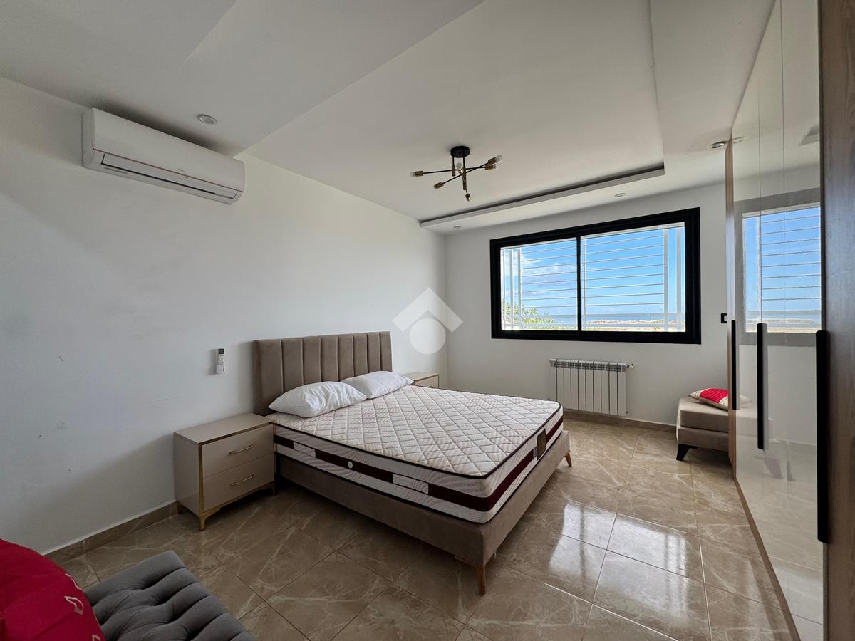 Apprtement S+2 meublé et climatisé, situé au rez-de-chaussée pieds dans l’eau. Ce bien d’exception comprend un salon spacieux et lumineux, deux chambres à coucher, une cuisine équipée avec coin repas et une salle d’eau avec douche à l’italienne. Il dispose également d’une piscine privée couverte et d’un jardin aménagé, offrant confort, intimité et cadre de vie privilégié. Idéal pour les amateurs de bord de mer, ce bienallie modernité, luxe et emplacement exceptionnel.