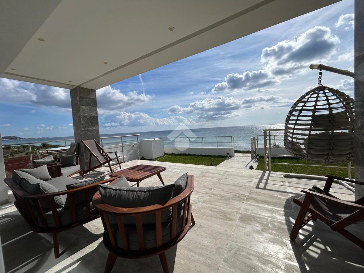 La villa principale, bien entretenue, se compose d’un salon lumineux, de quatre chambres dont une suite parentale, de deux salles d’eau, d’une cuisine équipée, d’un garage et d’un jardin paysager offrant une vue dégagée sur la mer.